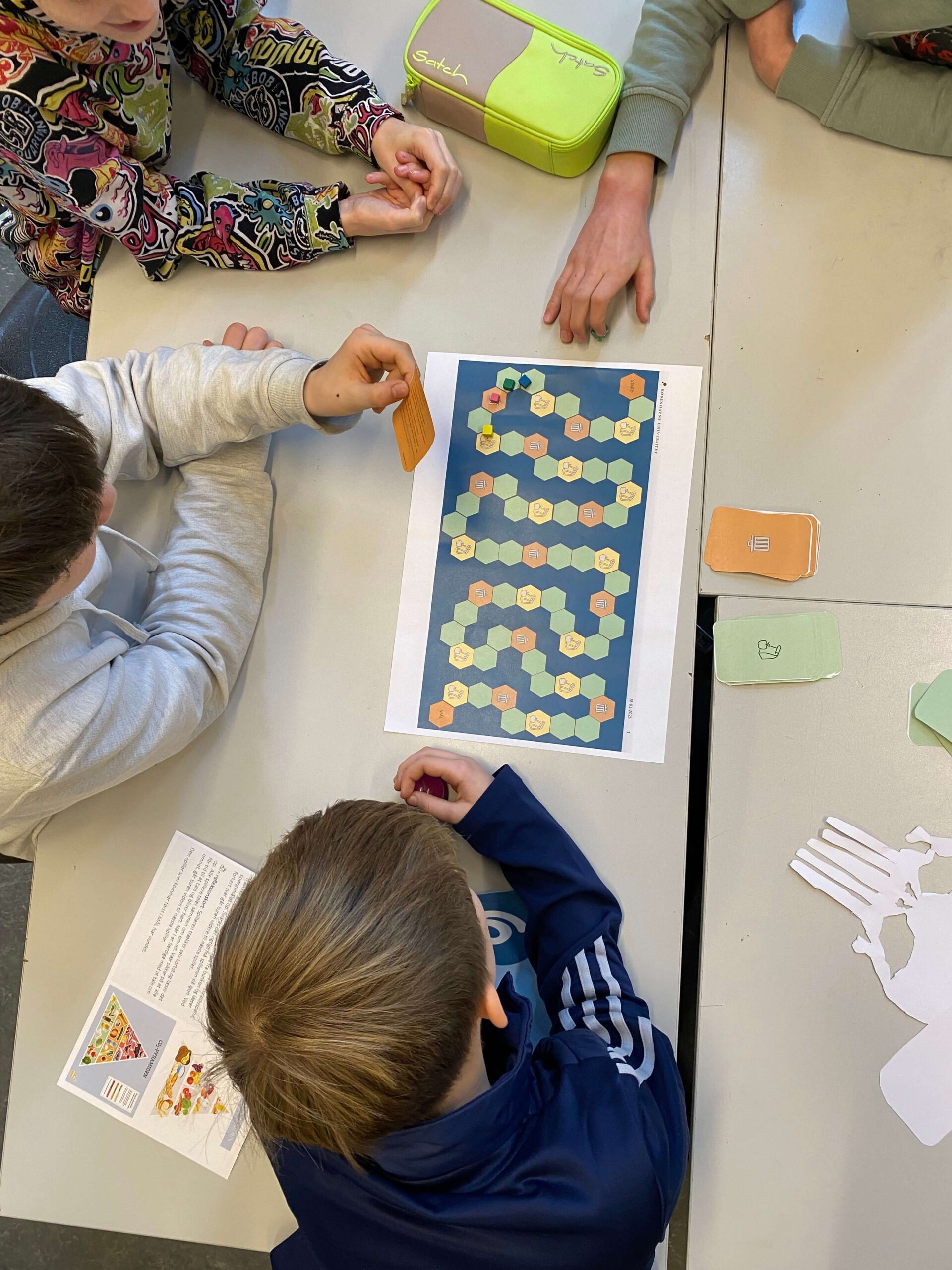 The game particularly focuses on school and home contexts, such as lunch-packs and eating with the family. The game is designed as an activity that can be carried out in the classroom among pupils and at home with the family – so called school-home learning tools. The game comes with questions, reflection and action cards.