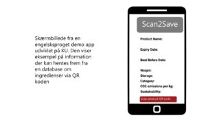 Rigtig meget madspild hænger sammen med, at vi ikke har styr på udløbsdatoerne og derfor ender i situationer, hvor vi ender med at måtte smide maden ud. Det kan den smarte stregkode Scan2Save være med til at lave om på. På KU har vi længe arbejdet med Scan2Save projektet og udnyttet en type af stregkode, en 2D stregkode, som i modsætning til den gammeldags stregkode, har mulighed for at indeholde ekstra data som for eksempel udløbsdato. Ved at kombinere denne teknologi med f.eks. elevdrevet apps app-udvikling kan vi begynde at eksperimentere med at holde styr på fødevarerne i vores køleskab. Skulle I være så heldige at have et skolemadskøkken på jeres skole kan I måske også få lærere og elever med på ideen om et lille eksperiment. Ideen er at skabe en applikation, der kan holde styr på hvilke fødevarer, der for eksempel findes i et køleskab og hvornår de udløber. Der også er mulighed for at skabe det vi kalder Skole-Til-Hjem læring, ved at afprøve ideen hjemme i jeres egne familiers køleskabe. Ideen er at skabe en slags køleskabs- check-in check-out funktion, som giver mulighed for at arbejde med fødevaredata omkring næringsindhold, holdbarhed, CO2aftryk mv.
